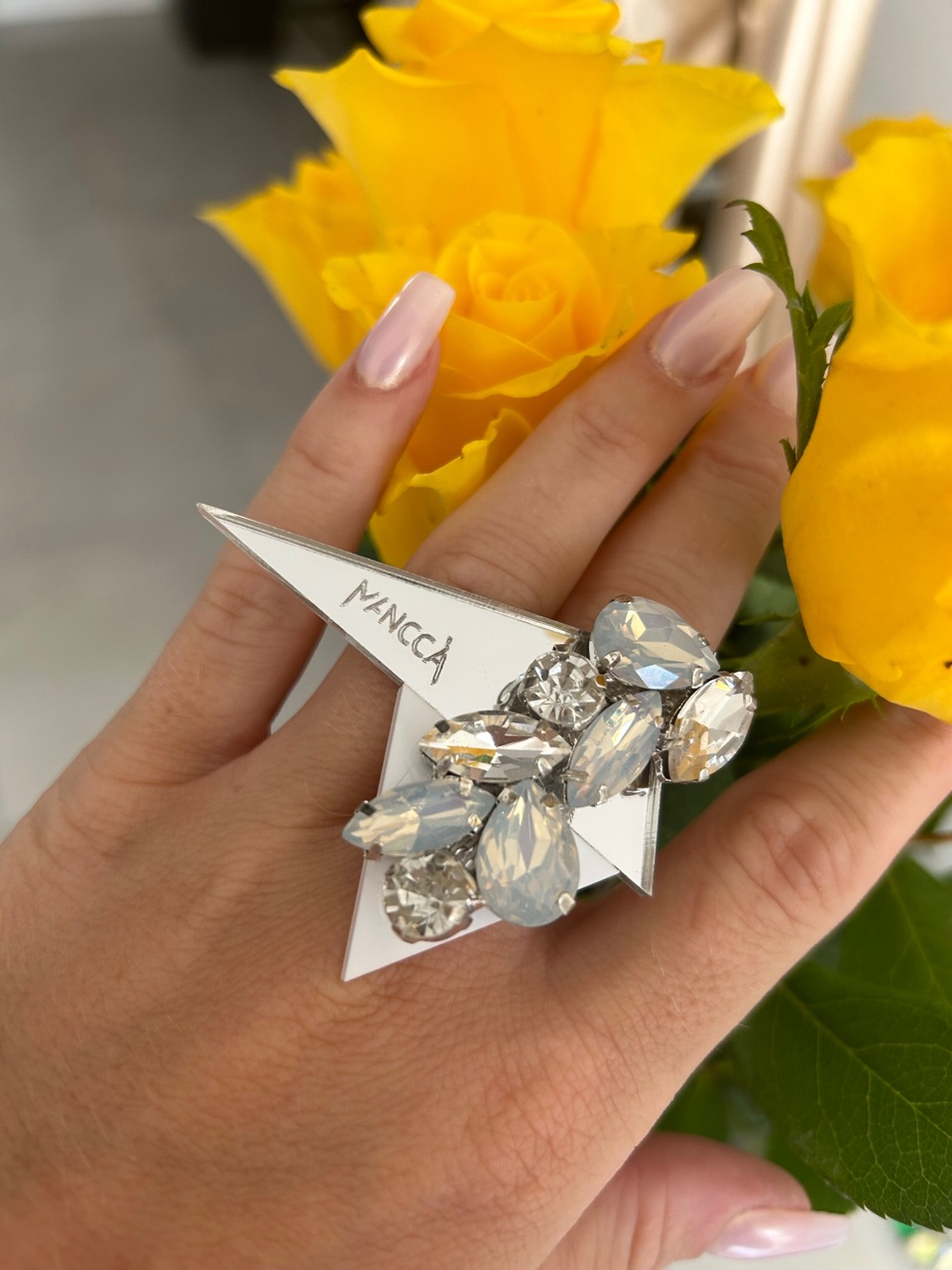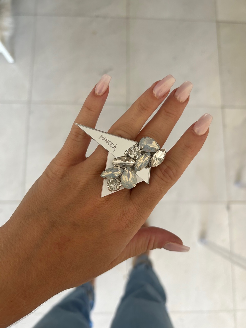 Bel in mirror silver prstan je kot nalašč za top stajliš kombinacije. Nor in eleganten statement kos, ki bo gotovo požel ogromno komplimentov. Izstopa z unikatnim dizajnom in kristali. Bodi drzna in si privošči drugačen kos nakita.