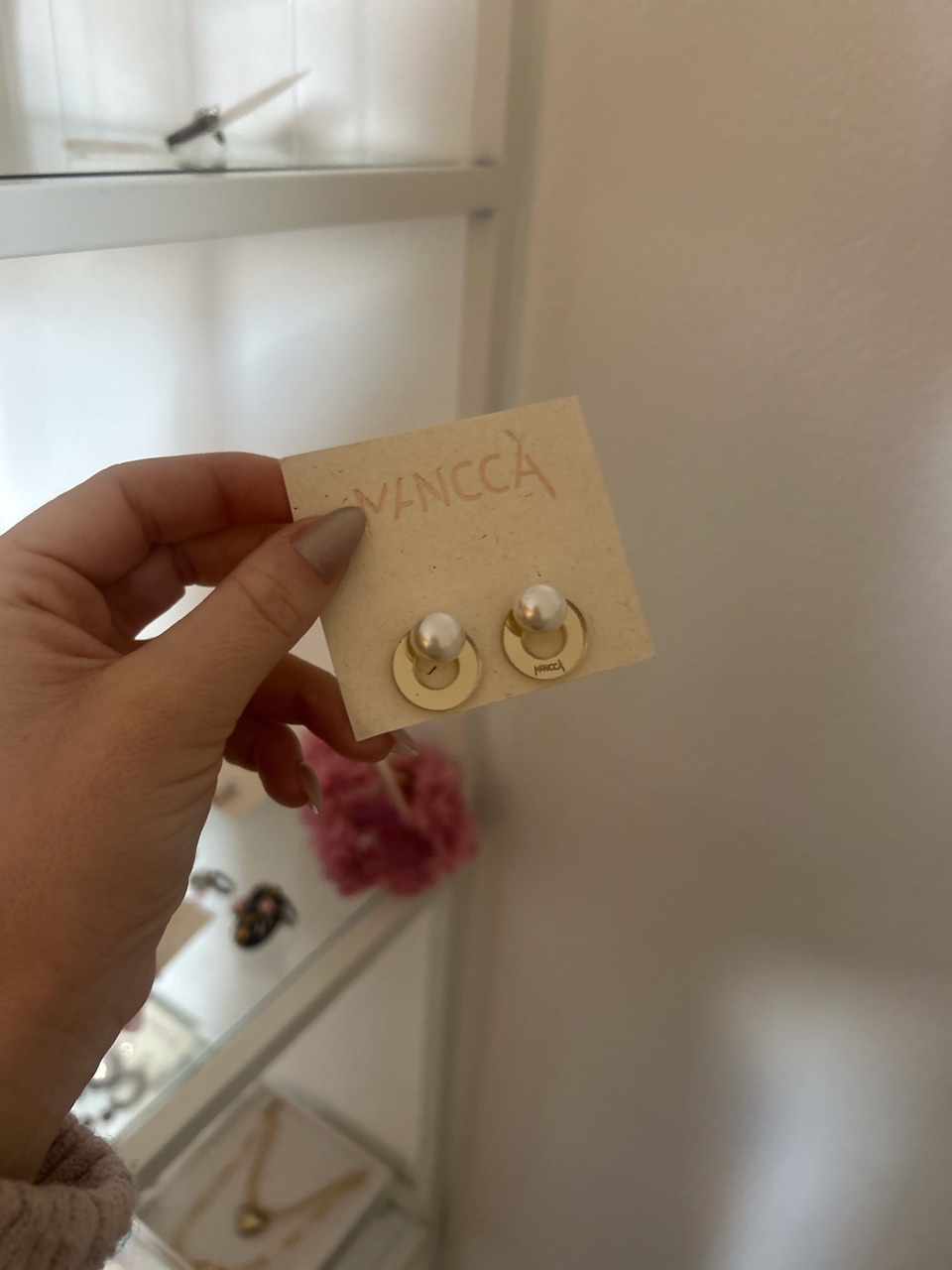 Crystal mini round pearl uhani