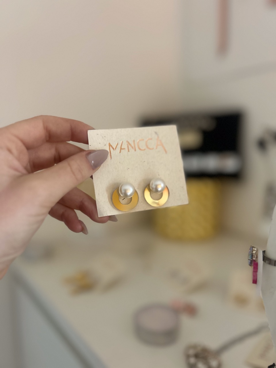 MINI Uhani round – uhani na zlati mirror podlagi z dodatkom dveh večjih perl za vsak dan ali posebno priložnost. Enostaven design in odbit look. Poživite svoj look.