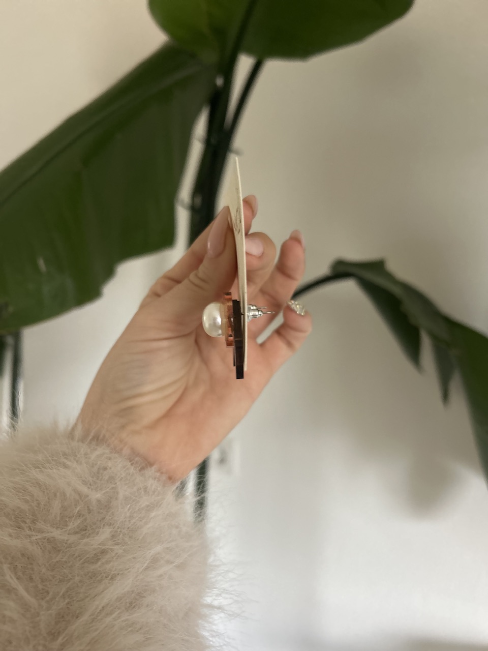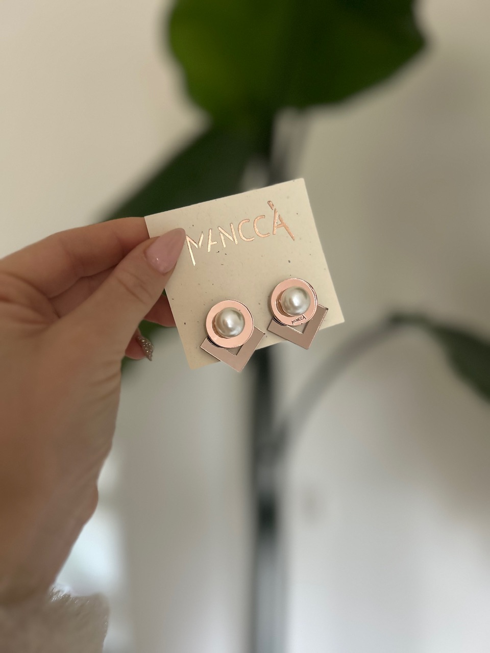Uhani v pelah in bež odtenkih – na rosegold podlagi z dodatkom mirror rjave za vsak dan ali posebno priložnost. Enostaven design in odbit look. Poživite svoj look. Top za vsakodnevne kombinacije.