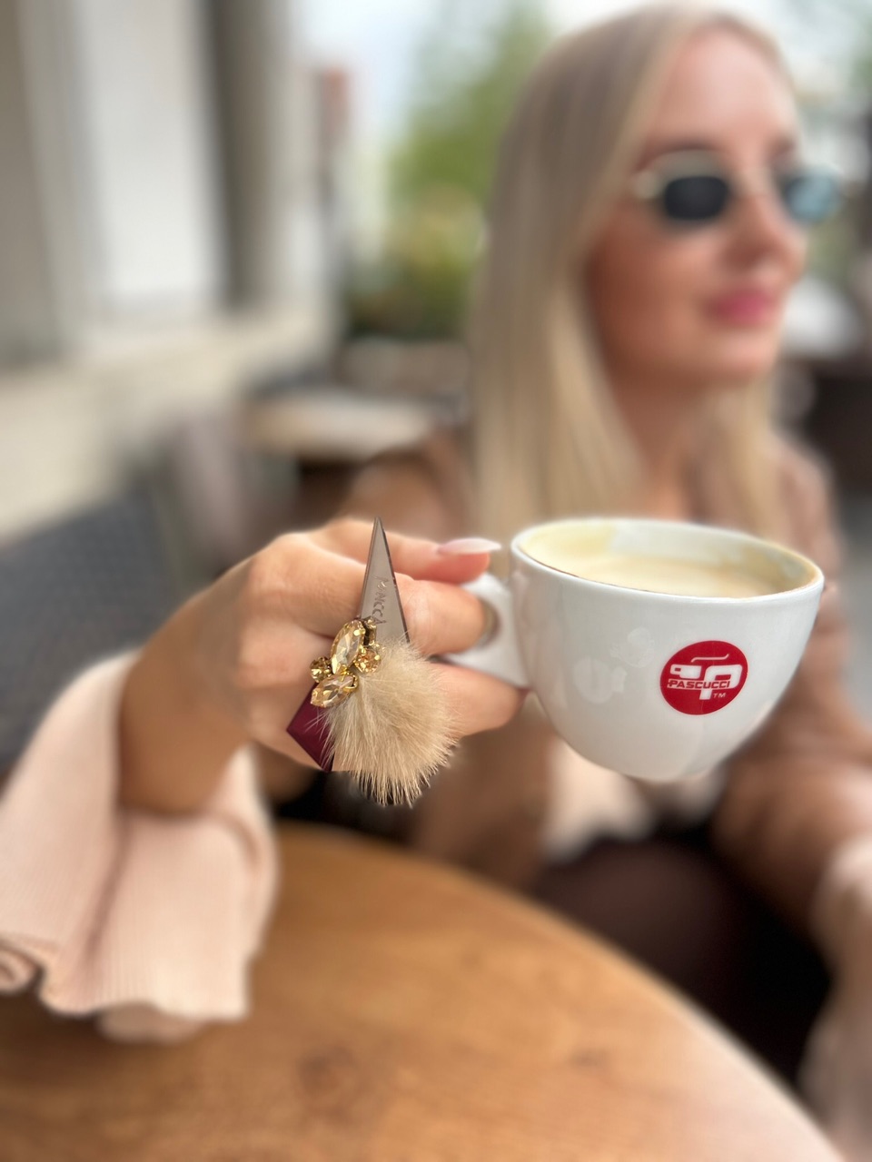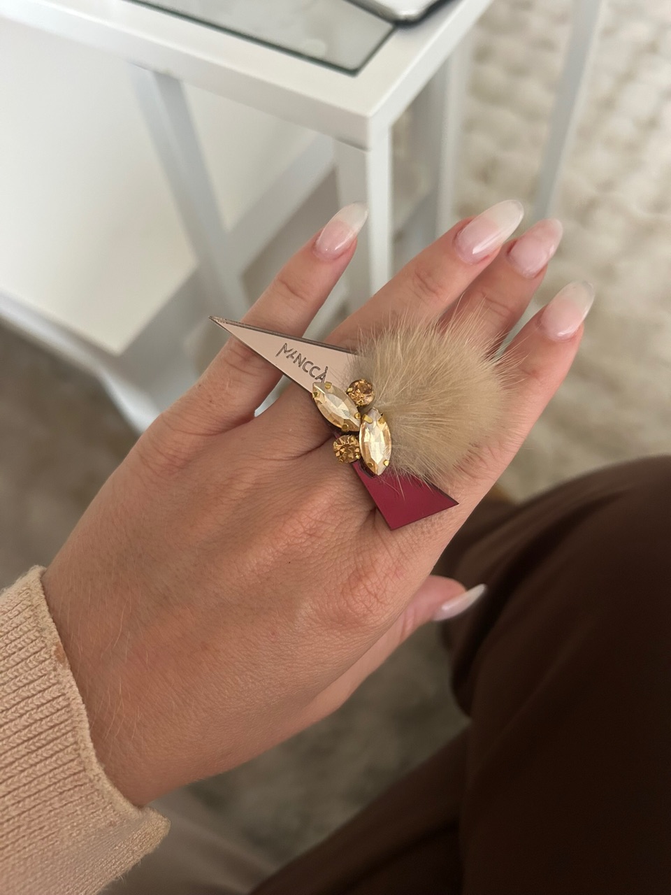 Kombinacija temno rdeče, zlate in rjave, deluje zelo kraljevo in prestižno, hkrati pa umirjeno jesenko! Prstan je kot nalašč za top stajliš kombinacije. Nor in eleganten statement kos, ki bo gotovo požel ogromno komplimentov. Izstopa z unikatnim dizajnom in kristali. Bodi drzna in si privošči drugačen kos nakita. Nora kombinacija je kot nalašč za jesenske stajlinge.