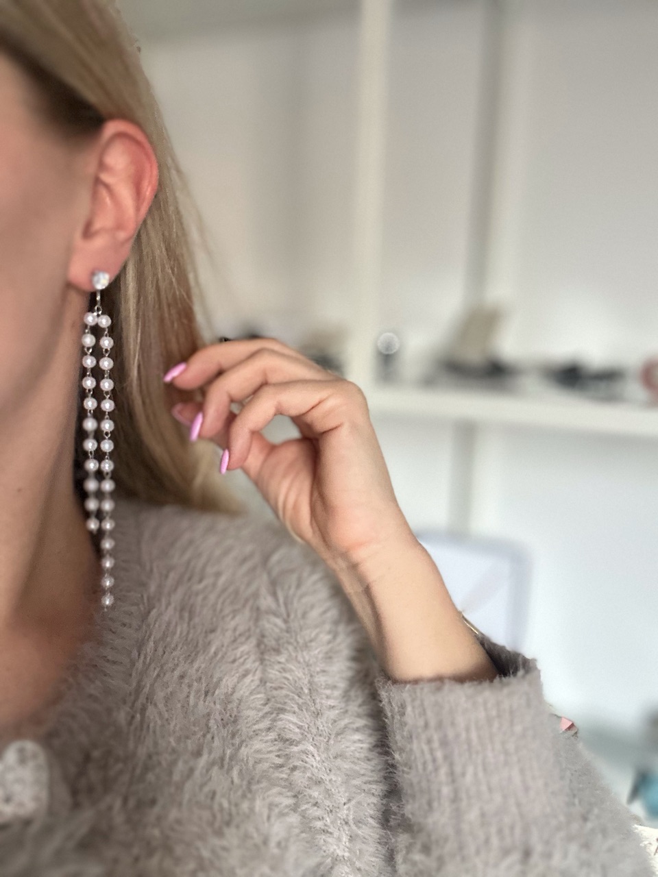 Čudoviti asimetrični, srebrni pleksi uhani, viseči. Za čiste vsakodnevne kombinacije.