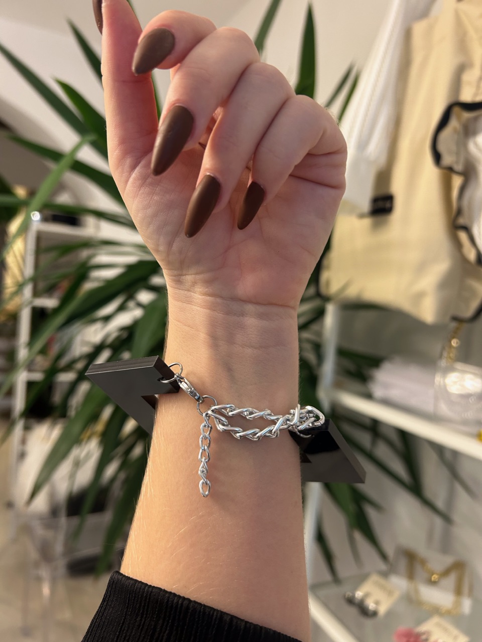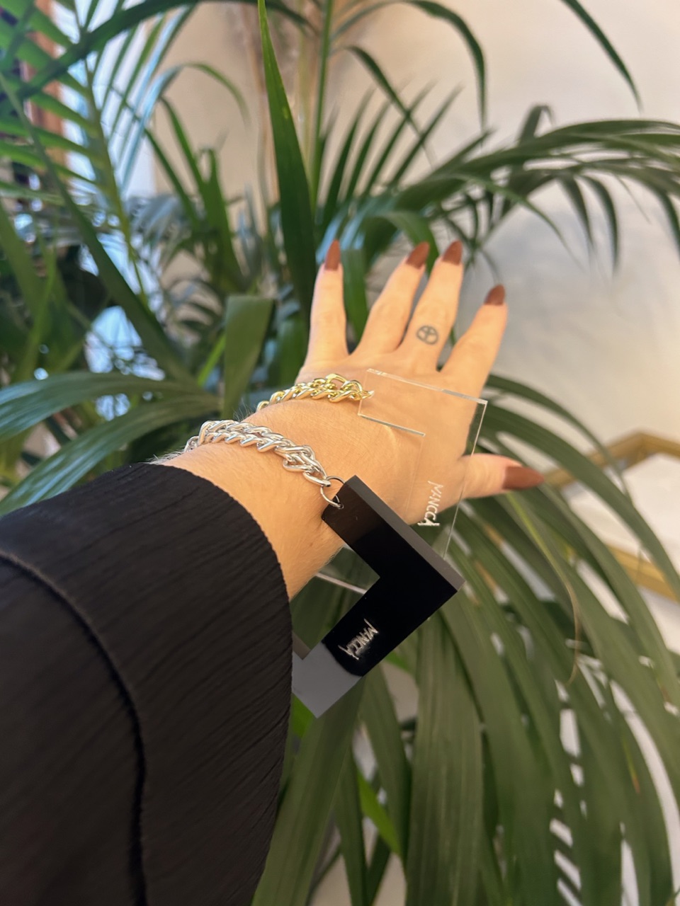 Zapestnica THE SQUARE je pravi modni hit, ki ga preprosto moraš imeti. Popestri prav vsak outfit in očara s svojo svetlikajočo črno barvo, ki jo lahko kombiniraš prav na vse. Zasnovana za vse obsege, saj je veriga vkomponirana tako, da zaseda eno tretjino zapestnice in se prilagaja. Super se stilira tudi na daljša rokava.