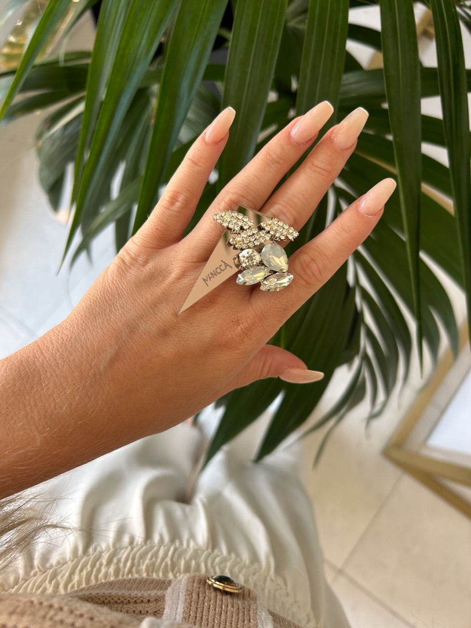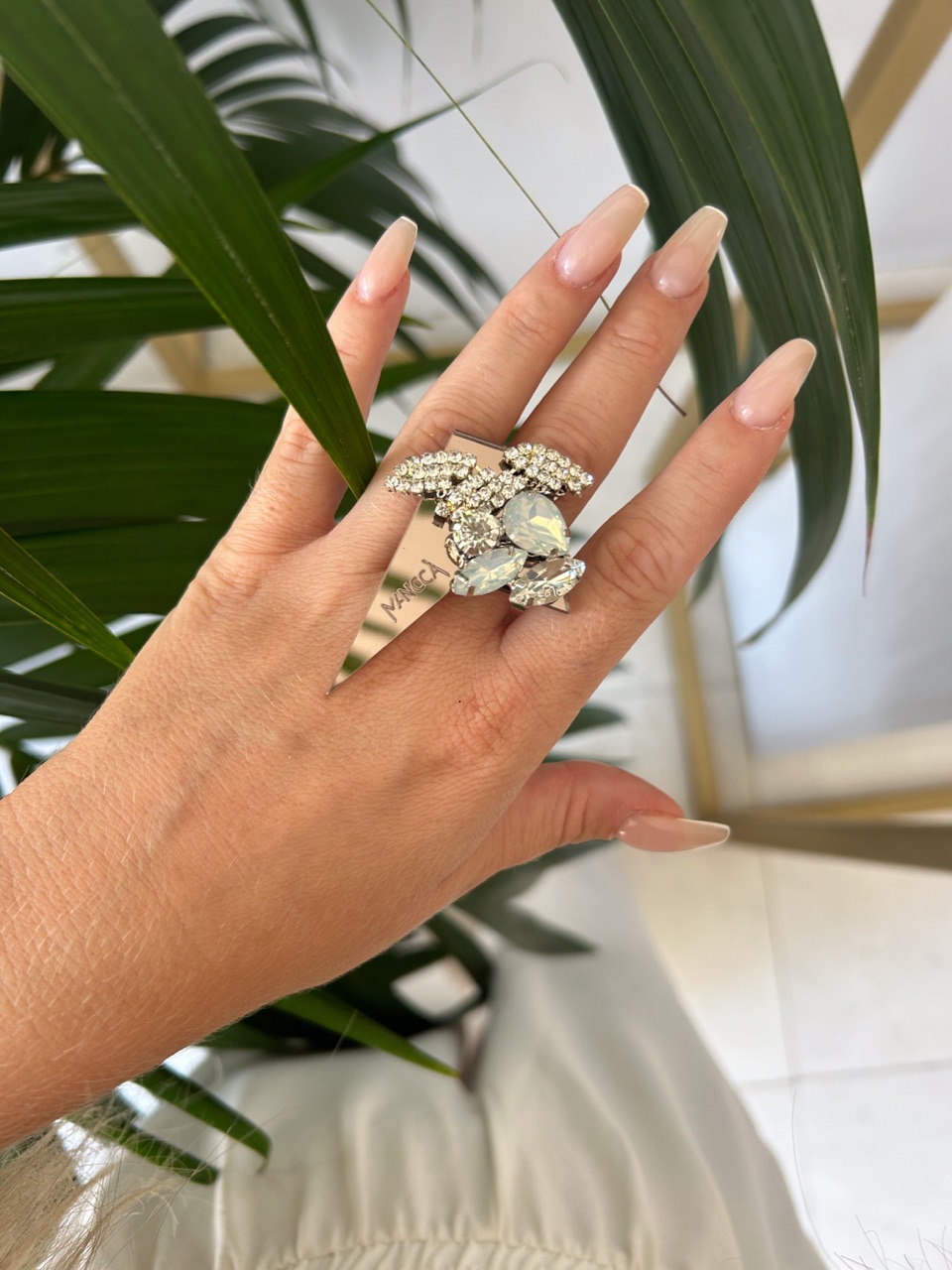 Kombinacija bežkasto rjave in belo srebrnih kristalov, deluje zelo sveže! Prstan je kot nalašč za top stajliš kombinacije. Nor in eleganten statement kos, ki bo gotovo požel ogromno komplimentov. Izstopa z unikatnim dizajnom in kristali. Bodi drzna in si privošči drugačen kos nakita. Nora kombinacija je kot nalašč za jesenske stajlinge.
