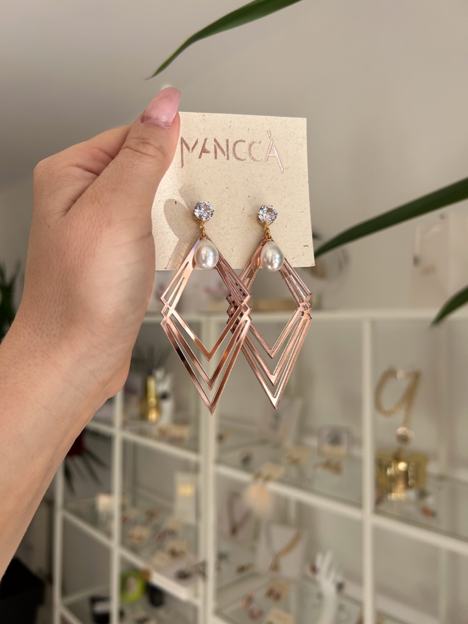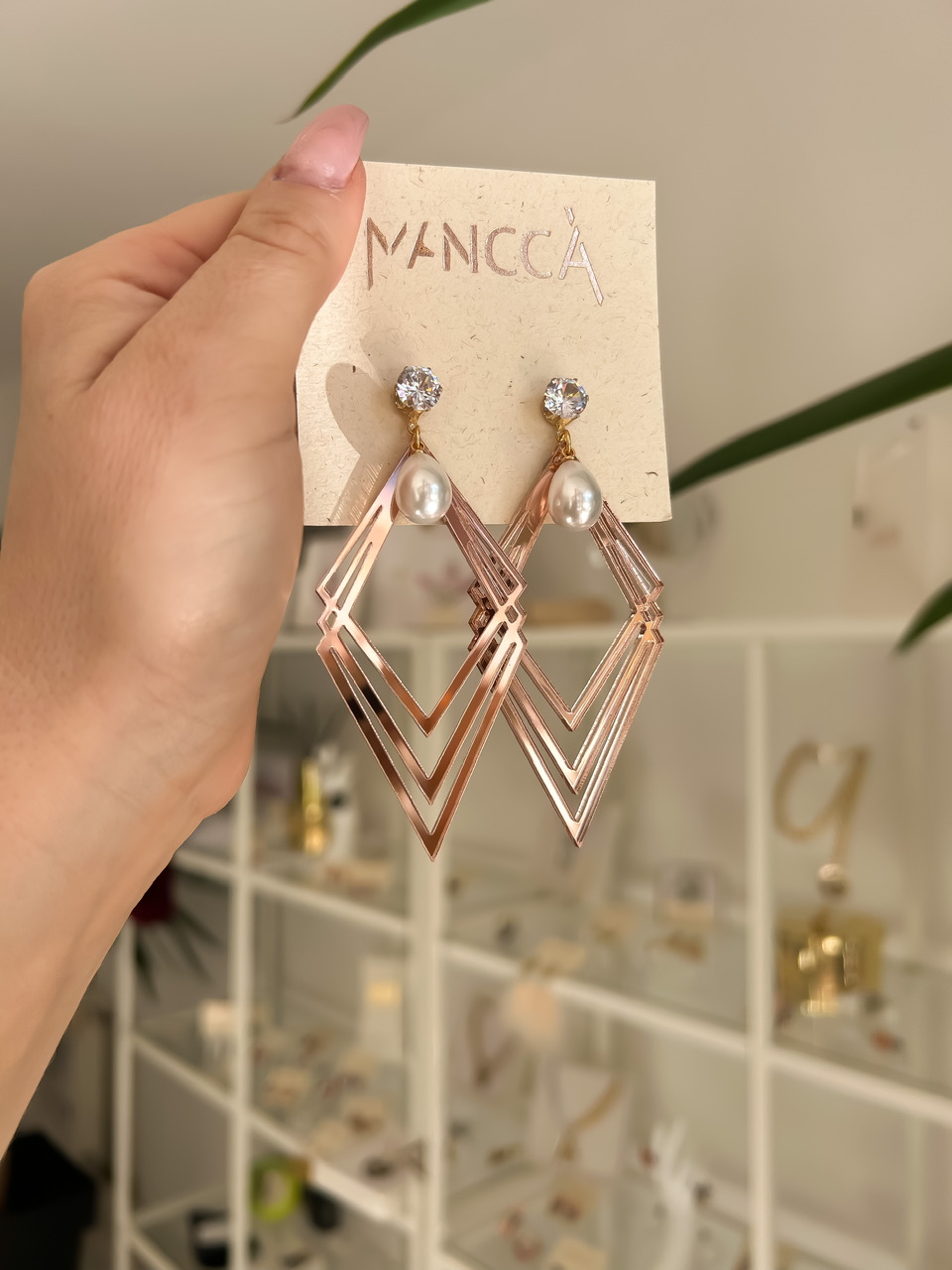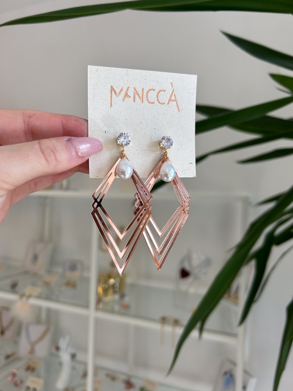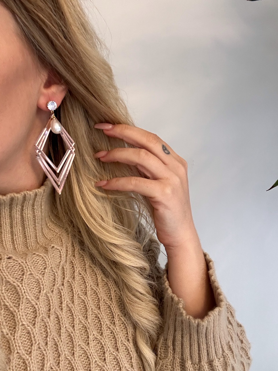 Uhani drop – šik in modni padajoči mirror rose pleksi uhani s cirkonom za zaključek in perlo, bodo popestrili prav vsak kos oblačila. Odlični tudi za poročne kombinacije. Za vse, ki si drznete.